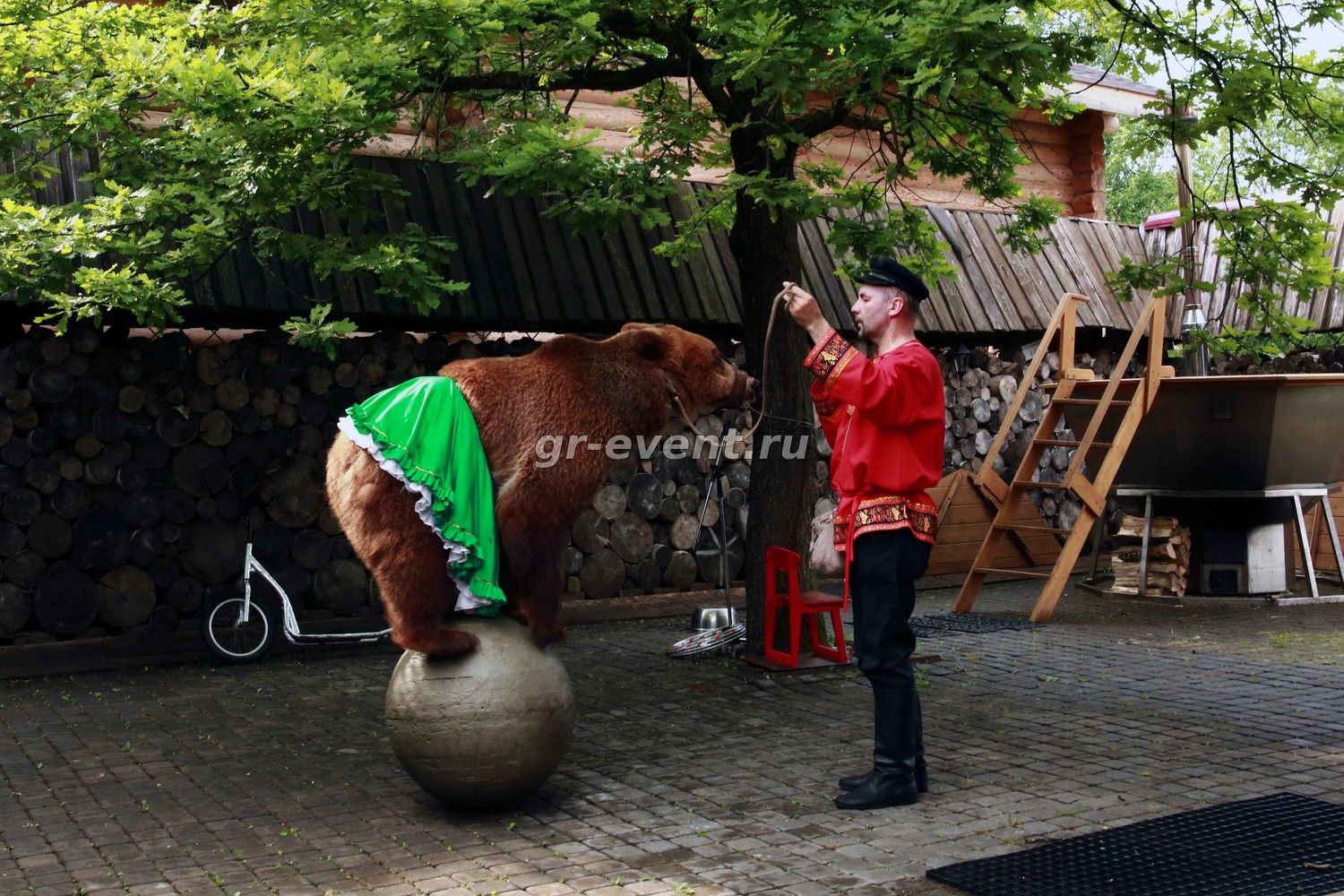 Дрессировщик отдельно оговаривает программу, которая длится около 10 минут, а после выступления гостям можно сфотографироваться с медведем.